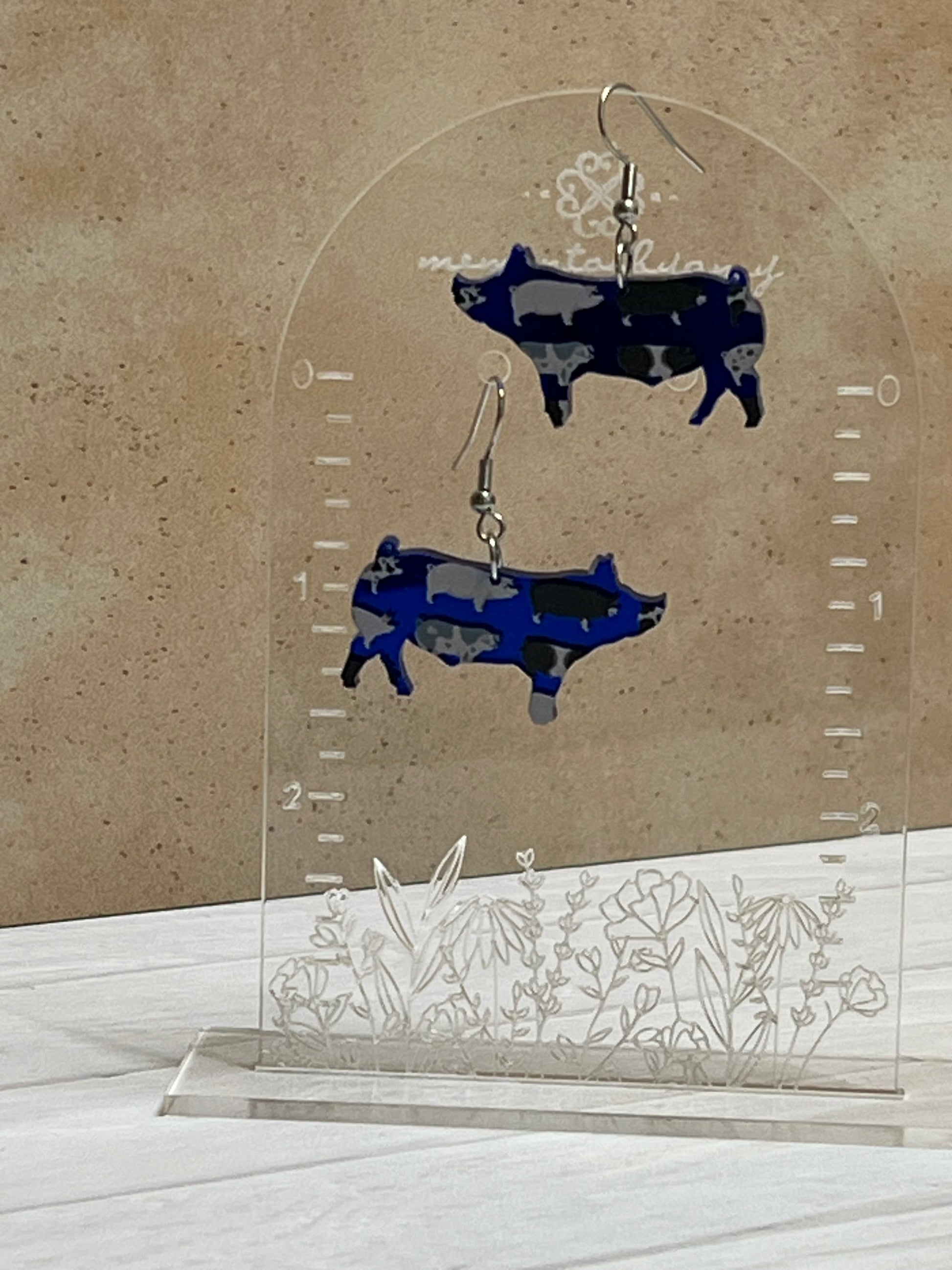FFA Swine Project member?? Bring a touch of whimsy to your style with these playful mini pigs on blue mirror acrylic dangle earrings. Their shiny finish catches the light beautifully, while the lightweight design ensures comfortable wear all day. Perfect for adding a fun, piggy twist to any outfit!