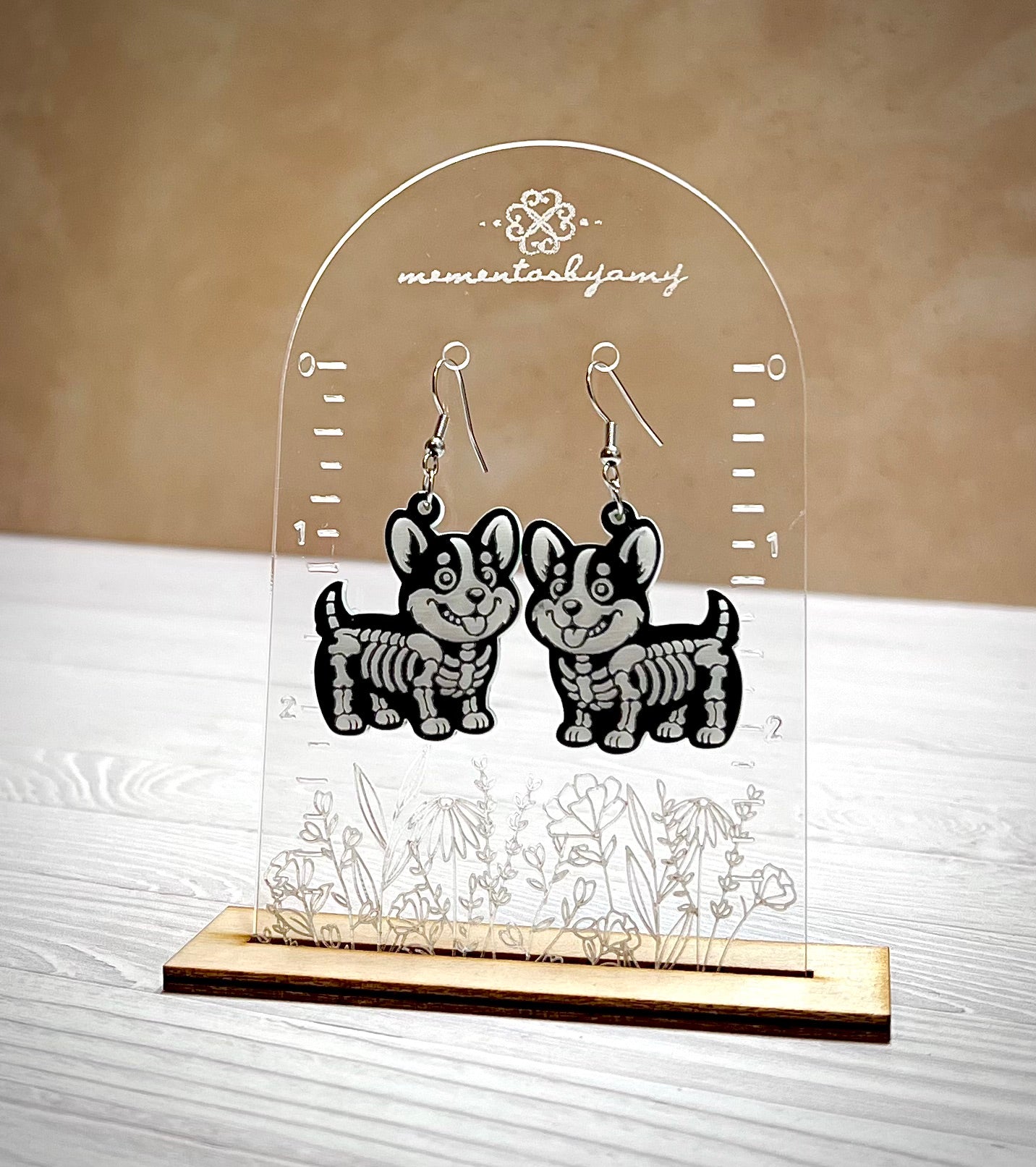 Rock some unique and whimsical style with our Corgi Skellie Earrings! These playful earrings feature the charmingly spooky design of corgi skeletons. Perfect for dog lovers and anyone with a sense of humor. (Pun intended.)