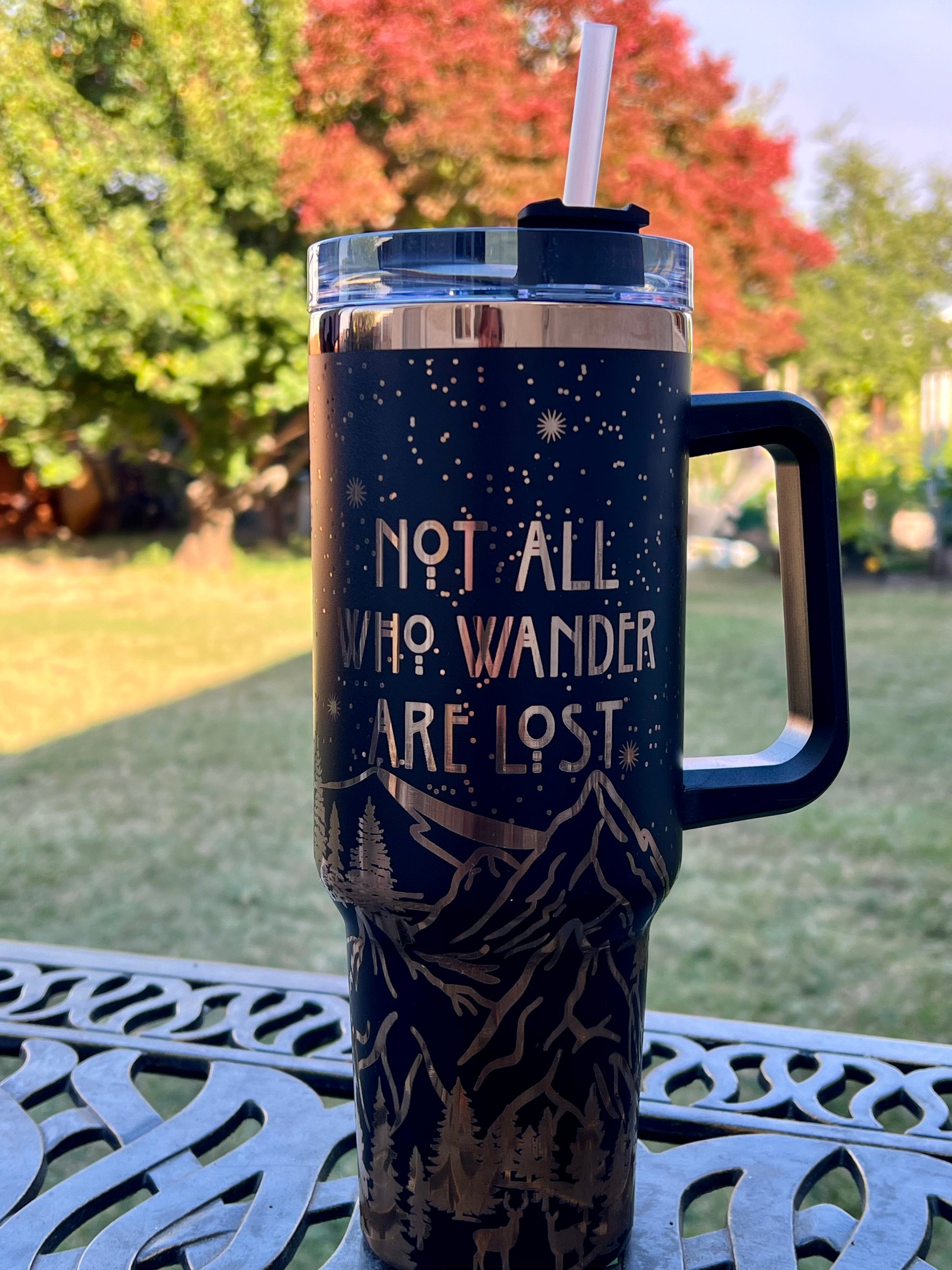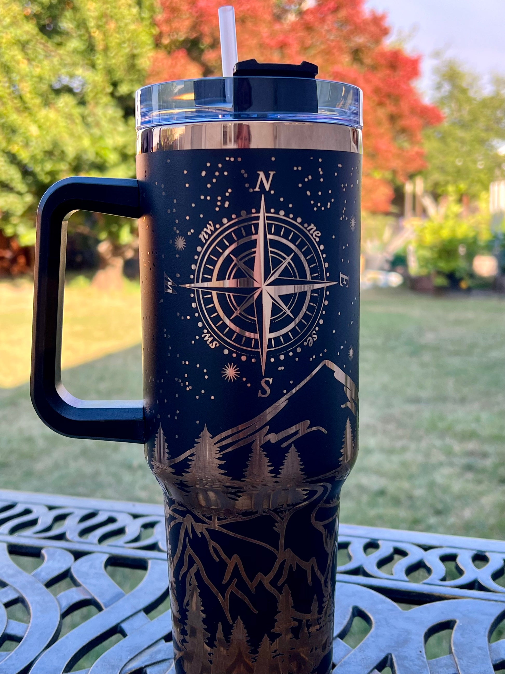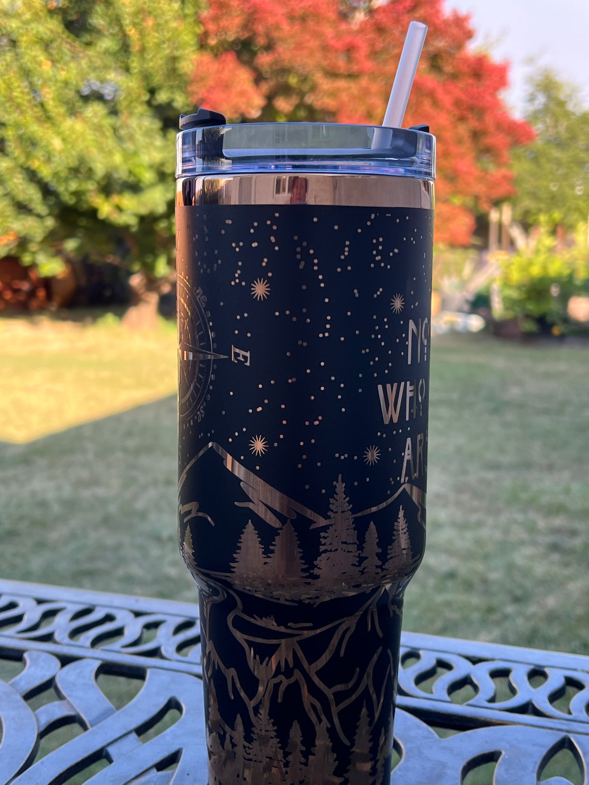 Show your passion for the outdoors with this black and gold tumbler! Full wrap design is sure to impress and make you wish you were in the great outdoors!