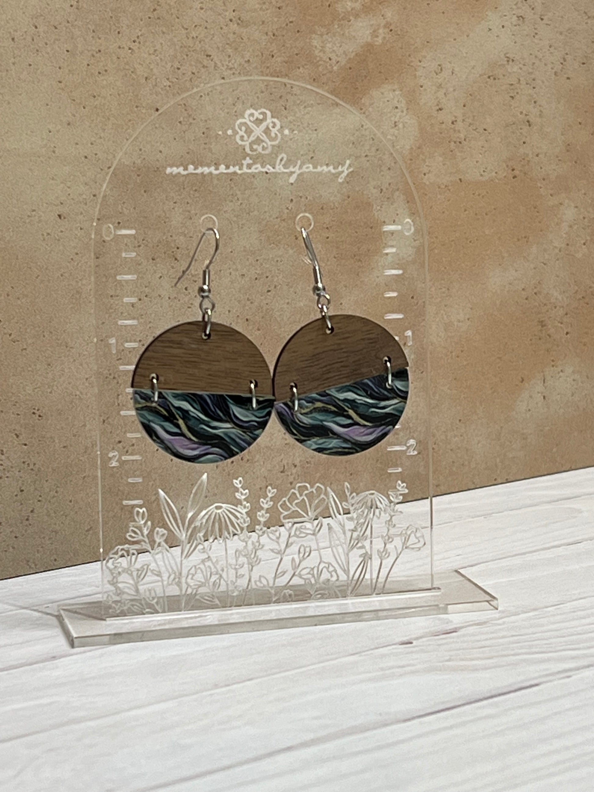 Round Wood & Acrylic Multicolor Swirl Dangle Earrings