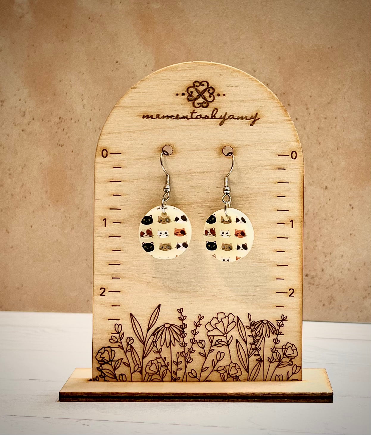 Get ready to purr with delight when you wear these cute disc-shaped earrings featuring quirky cat faces against a sleek ivory background. Made of lightweight and durable acrylic, these dangly earrings add the perfect touch of whimsy to any outfit. Perfect for cat lovers and those who love to embrace their inner feline!