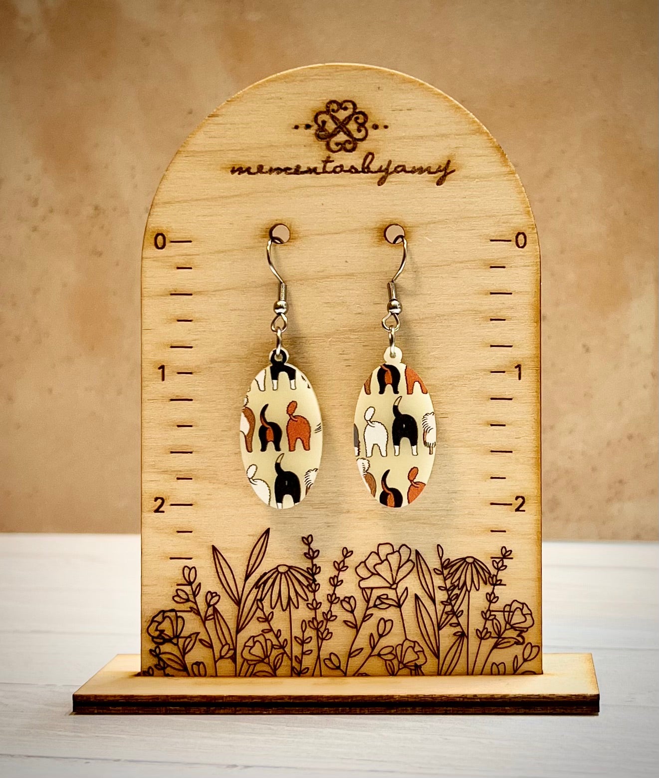 Get ready to turn heads with these playful dangle earrings! Featuring a small oval shape and an ivory background, these acrylic earrings will add a touch of humor and personality to any outfit. The cute dog butt design adds a unique touch that is sure to make you stand out from the crowd. (Paw-fect for dog lovers!)