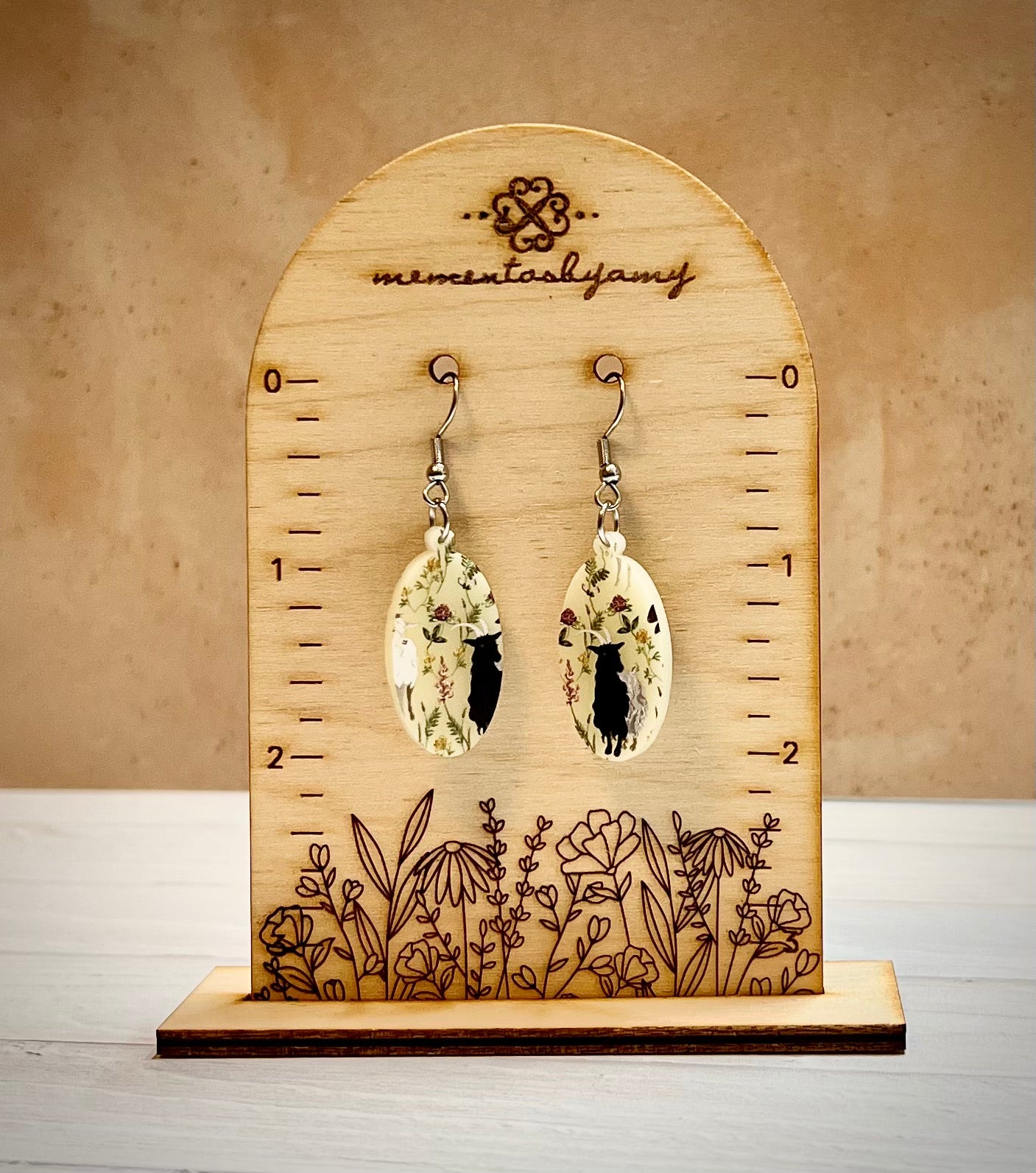 Add some quirky charm to your style with these small oval dangle earrings featuring adorable goats on an ivory and garden background. A playful touch to any outfit!