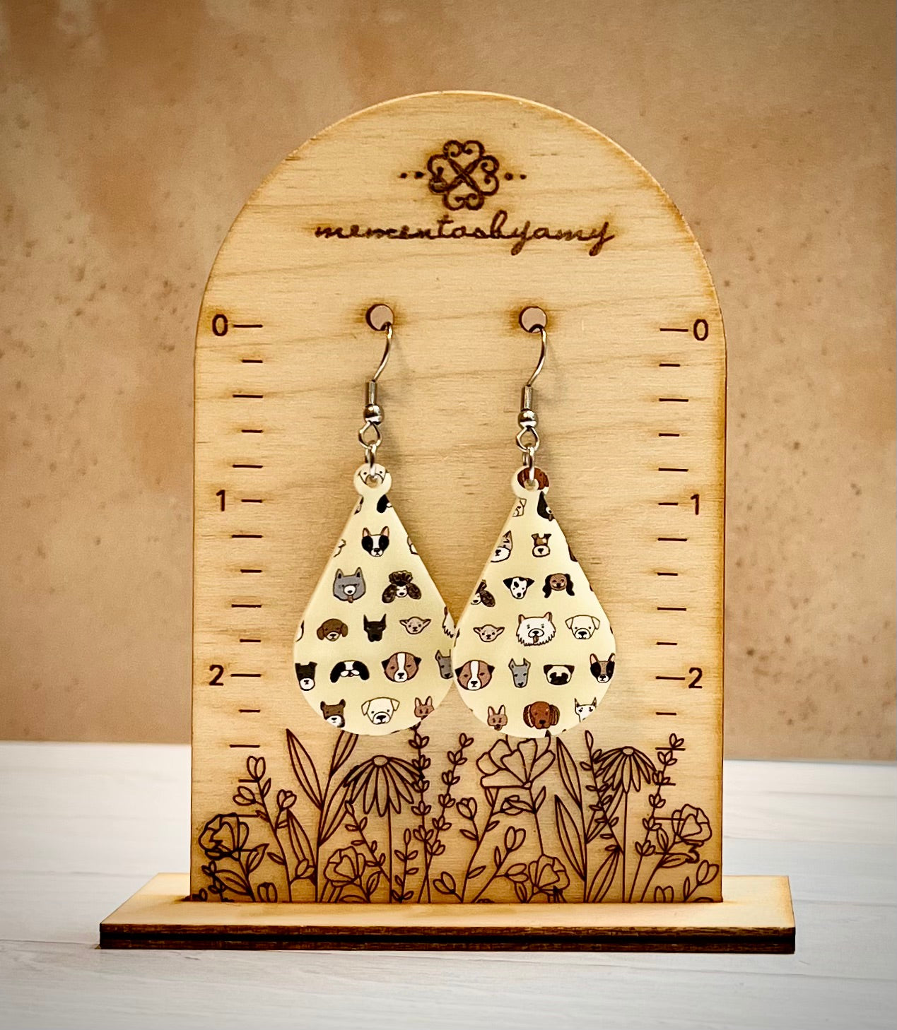 Get ready to unleash your style with these quirky acrylic earrings! The teardrop shape adds a unique touch to your look while the ivory background showcases adorable dog faces. Express your playful personality with these statement earrings. Woof-initely a must-have for any fashion-forward dog lover!